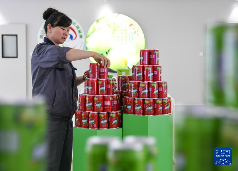 4月3日,在四川省达州市达川区百节镇,当地一家乌梅加工企业的员工在展厅摆放产品。新华社记者 王曦 摄
