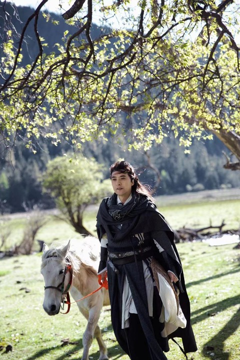 2022年6月,刘洪在四川甘孜藏族自治州九龙县伍须海以古代侠客的形象拍摄短视频。(受访者供图)