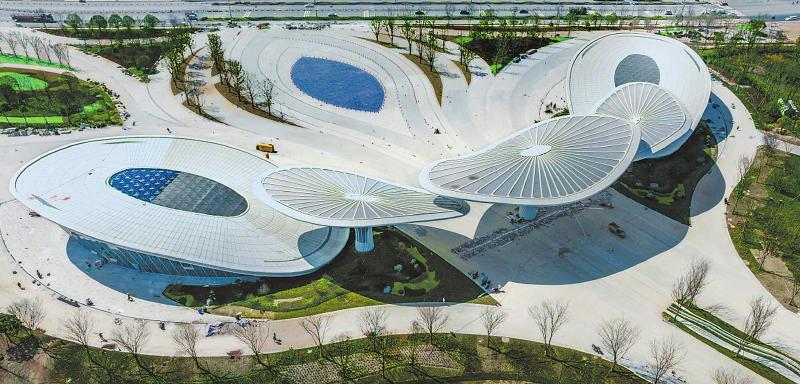 矗立在成都世园会主会场入口处的“芙蓉花瓣”其实还是雨水收集器。 郭磊 摄
