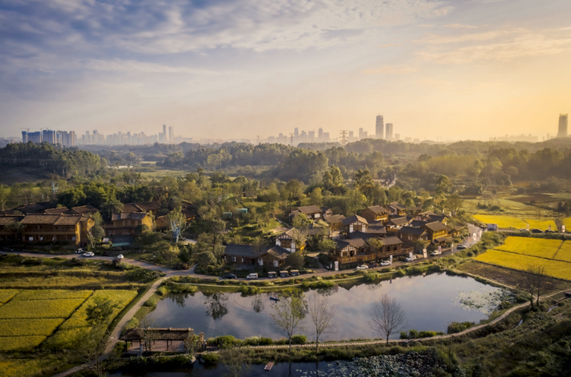 四川天府新区官塘村具备“大城小村”的近郊空间魅力,通过发展会展经济及现代农业,官塘村正着力打造为中央商务CBD延伸配套的“田园会客厅”,形成国际会展形态的“乡村表达”。