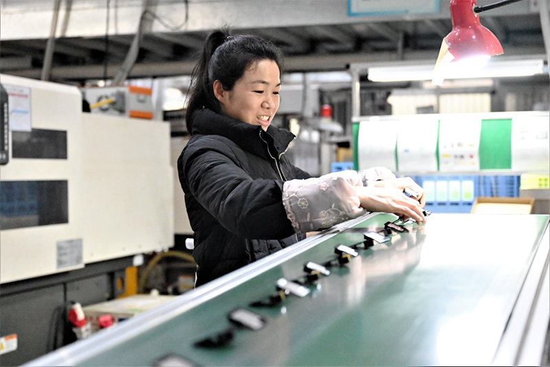 大竹荣利达精密塑胶公司工人忙碌生产。(李相芬 摄)
