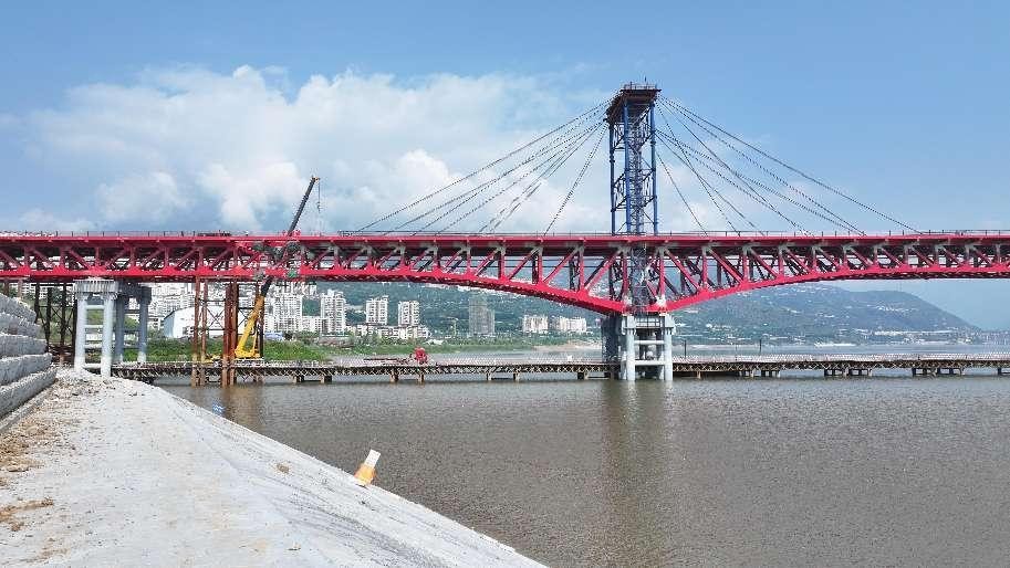 自2020年1月开工以来,项目团队历经一年完成了进场便道、钢栈桥搭设等临时辅助工程的施工,2021年3月顺利进入主墩桩基施工阶段。2022年2月,兰家湾特大桥的钢管格构墩首件成功吊装。2023年3月,兰家湾特大桥上构钢桁梁的安装工作也正式启动,经过一年半的艰苦奋战顺利实现钢桁梁合龙。