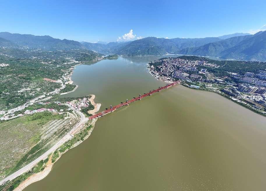 兰家湾特大桥横跨汉源湖,连接汉源城区和峨汉高速,大桥全长1330米,采用多跨变高连续钢桁梁+高桩钢管混凝土格构墩的创新设计,所有构件均采用钢、钢混结构,全桥用钢量3.45万吨,相当于23000辆小汽车的重量。