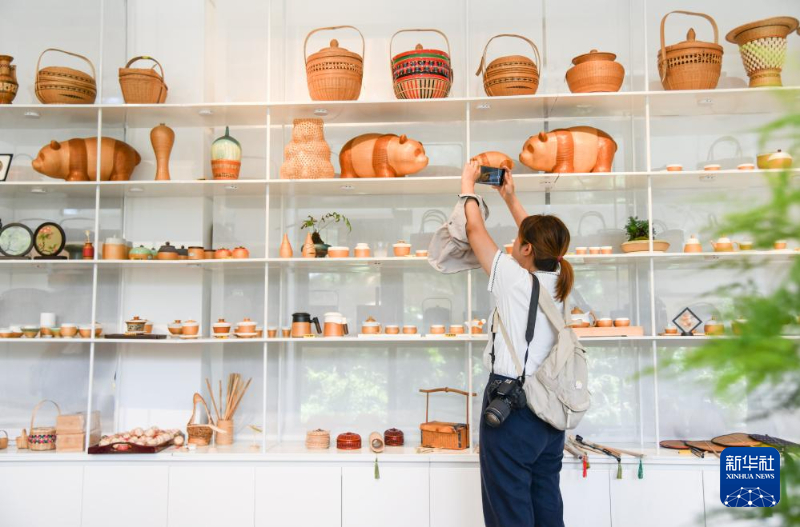 8月12日,在四川省崇州市竹艺村,游客在选购竹编产品。新华社记者 王曦 摄