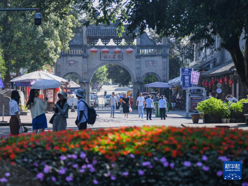 8月13日,游客在四川省崇州市元通古镇观光游览。新华社记者 王曦 摄