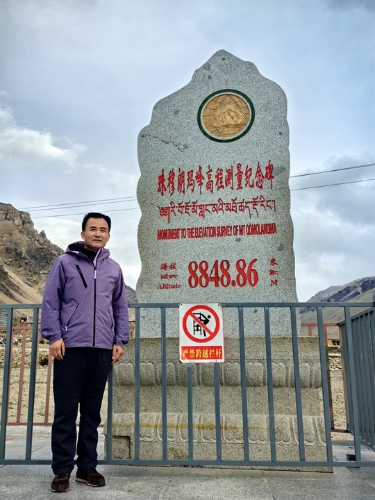邓伟(化名)登上珠峰一号大本营后的合影留念。图片由本人提供