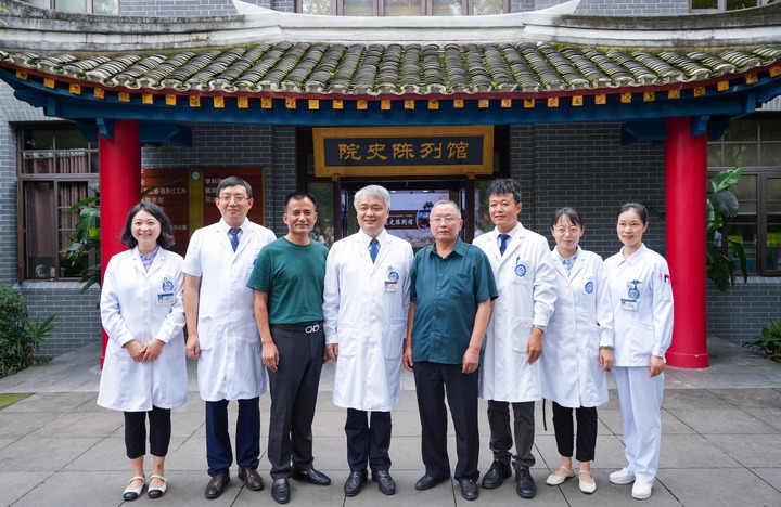 郭应强教授(左四)带领医护团队与患者在十年见面会后合影。四川大学华西医院供图