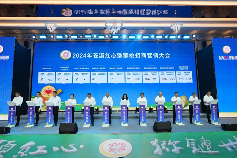 8月29日上午,2024年苍溪红心猕猴桃招商营销大会在四川省广元市苍溪县举行,来自北京、浙江、广州等地客商共计400余人参加。会上共签约119个项目、签约金额达81.5亿元。其中,苍溪签约69个项目,签约金额达54亿元。