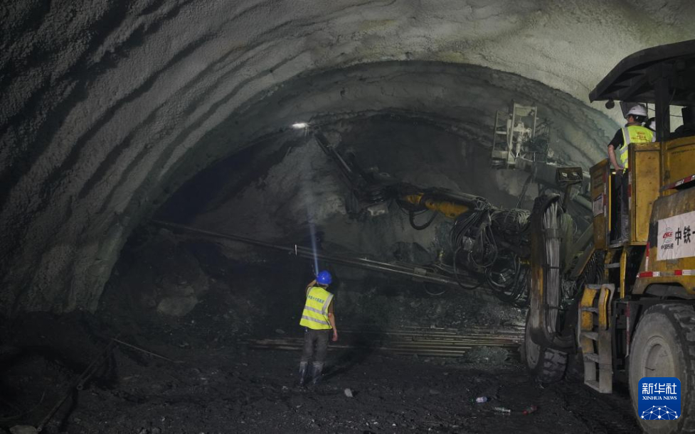 三臂凿岩台车正在德胜隧道中施工(资料图)。中铁十六局供图