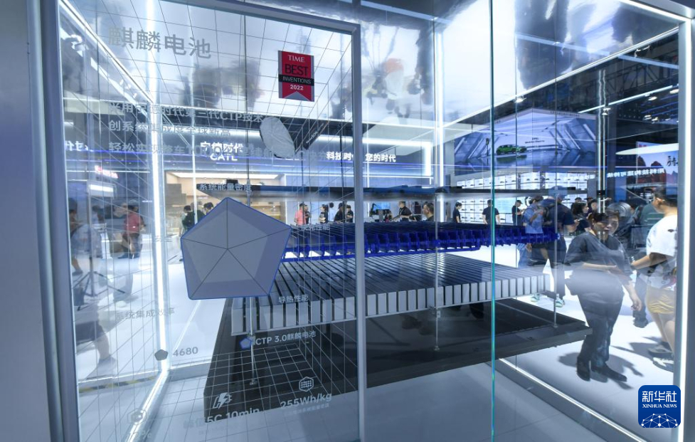 8月30日在第二十七届成都国际汽车展览会宁德时代展台拍摄的麒麟电池。新华社记者 唐文豪 摄