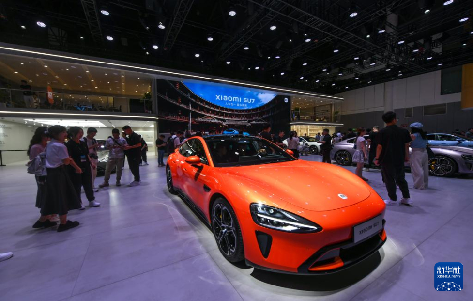 8月30日,参观者在第二十七届成都国际汽车展览会小米品牌展台驻足。新华社记者 唐文豪 摄