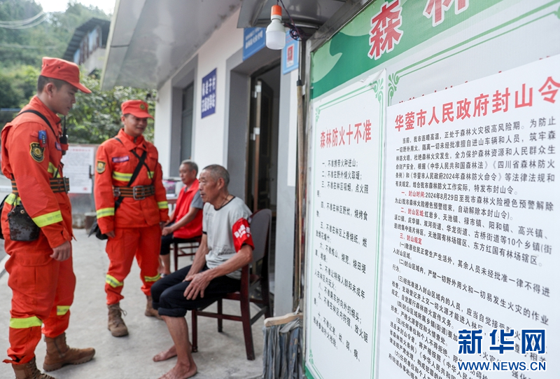 9月2日,四川省广安华蓥市森林专业扑火队在进山执勤点了解相关情况。