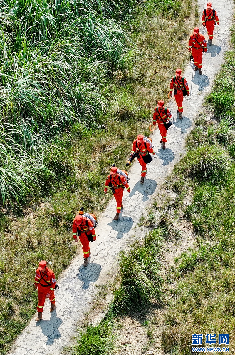 8月下旬以来,四川省广安市遭遇持续高温干旱天气,川东重要的生态屏障华蓥山森林防火形势非常严峻。地处华蓥山中段、森林面积较多的华蓥市,在对境内集中连片林区进行封山管理的同时,市、乡镇(街道)及村组各级森林应急防灭火队伍,战高温、斗酷热,带着装备巡护在林区,坚守在进山要道,严防死守,防患于未“燃”,全面筑牢森林“防火墙”。(拍摄:邱海鹰、刘南贤)