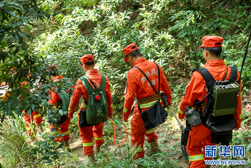 9月2日,四川省广安华蓥市森林专业扑火队带着装备在林区巡护。