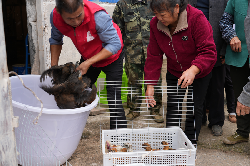 依次为村民发放鸡雏。(苍溪县委宣传部供图)