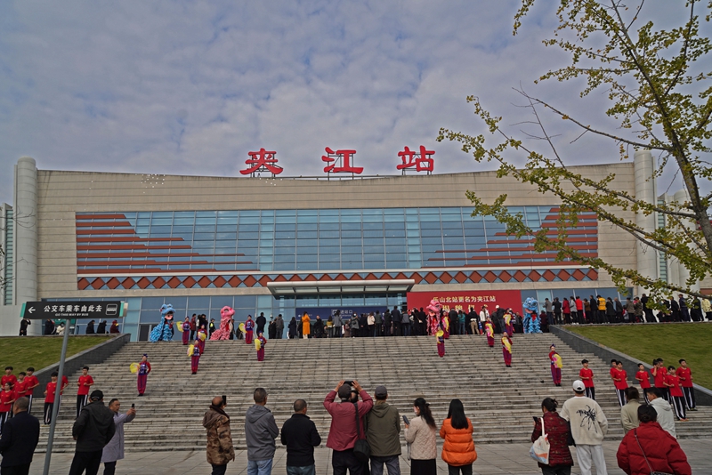 11月20日,市民和旅客见证乐山北站更名夹江站。(黎涛摄)