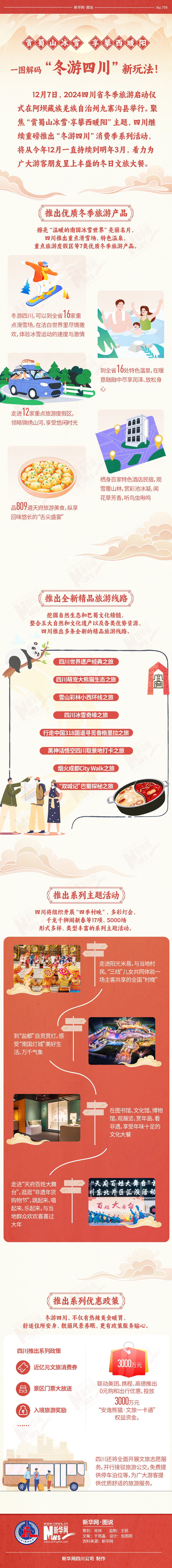 12月7日,2024四川省冬季旅游启动仪式在阿坝藏族羌族自治州九寨沟县举行。聚焦“赏蜀山冰雪·享攀西暖阳”主题,四川继续重磅推出“冬游四川”消费季系列活动,将从今年12月一直持续到明年3月,着力为广大游客朋友呈上丰盛的冬日文旅大餐。