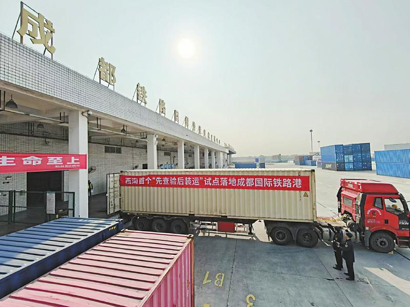 12月16日,一批拼箱出口的跨境电商货物在位于成都市青白江区的成都国际铁路港完成理货、申报、查验、放行、装箱,标志着西南首个“先查验后装运”监管模式正式落地成都国际铁路港。