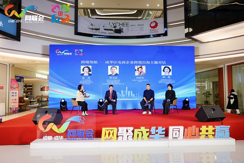活动现场,围绕电商企业跨境出海主题,成都米井文化传媒有限公司董事长何贯东进行了专题分享,还与新联会副会长、新联会出海律师代表曾文忠,中非商务中心四川省中心主任陈敏等嘉宾就跨境出海的法律风险、企业经营方向、出海经验、跨境平台作用等话题展开了对话。