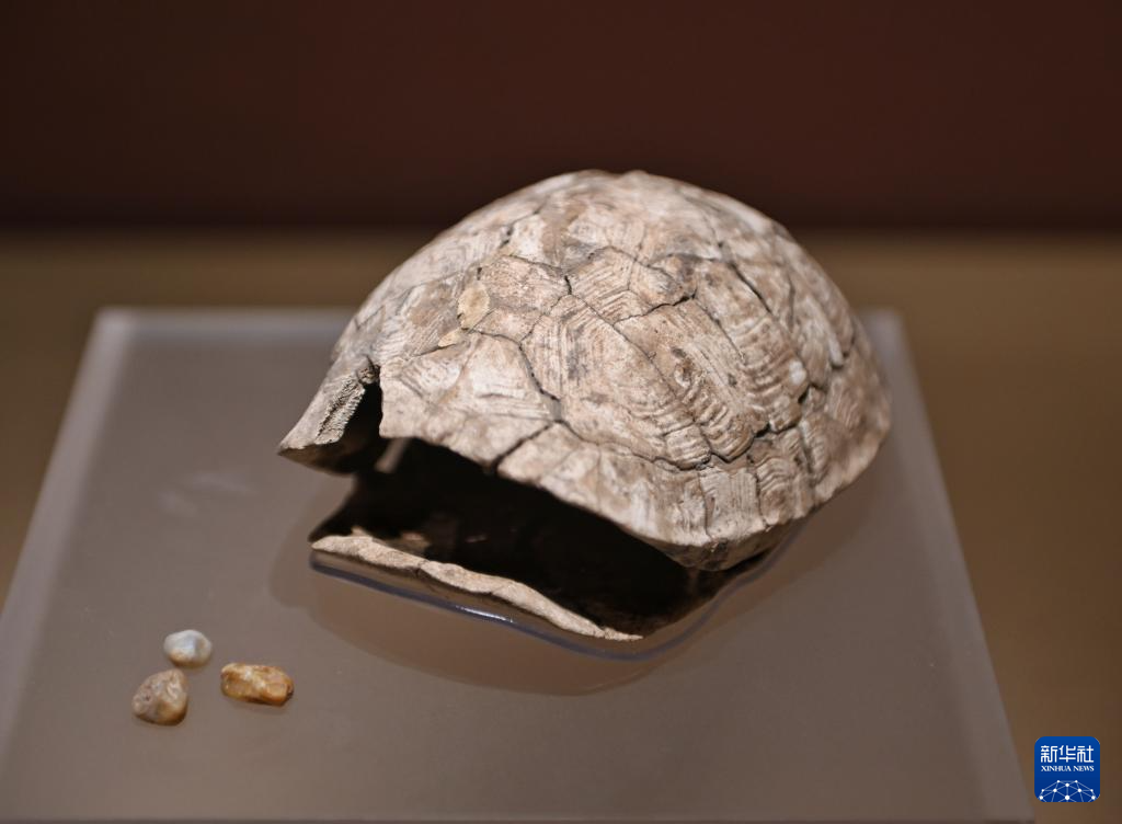 图为展出的裴李岗文化时期龟甲响器(1月20日摄)。新华社记者 刘坤 摄