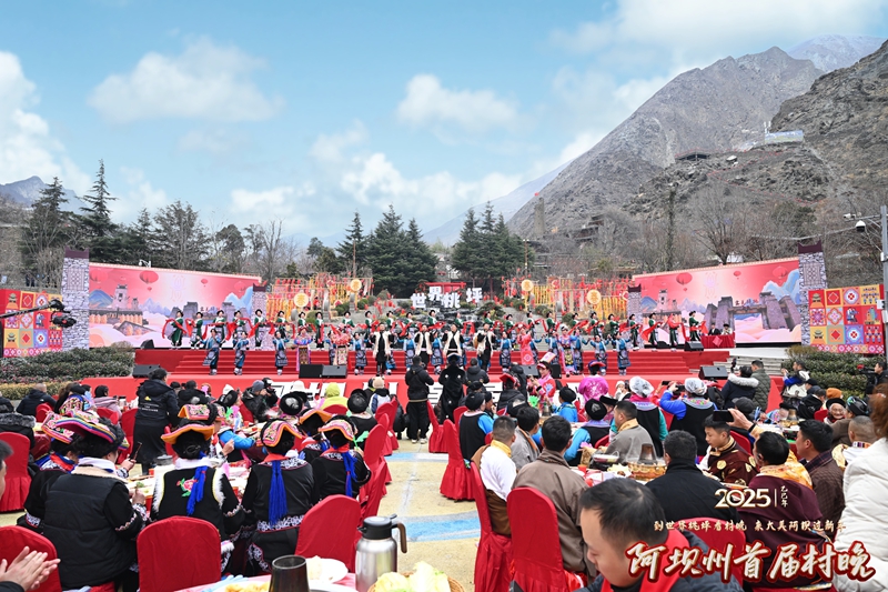 阿坝州首届村晚以“到世界桃坪看村晚・来大美阿坝过新年”为主题,按照“国际范、历史韵、民族风、新年味”思路,由沉浸式探秘桃坪老寨—乡村年味、开放式探购乡村集市—非遗好物、解析式探寻桃坪村晚—首届村晚三部分构成,集中展现羌族年俗、乡村集市、藏羌文化。