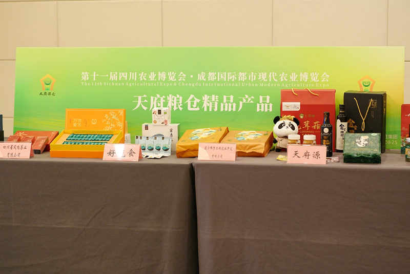 “天府源”作为天府粮仓精品产品在新闻发布会现场展示。(成都市农业农村局 供图)