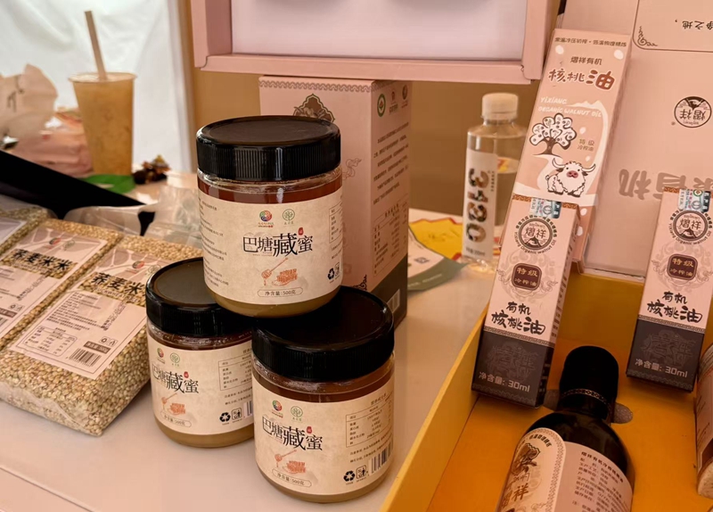 在央勒节市集上,蜂蜜、核桃、荞麦米等巴塘特产吸引游客驻足。“我们收购加工当地农畜产品,通过‘喜啵巴塘’小程序和318沿线展销活动推广销售。”木灵珠商贸有限公司负责人邱宏杰说。