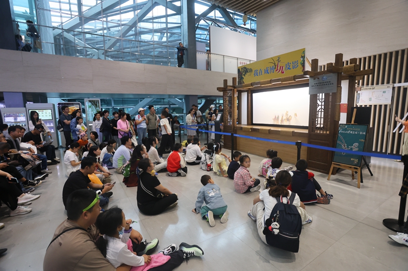 观众在成都博物馆观看皮影戏。(成都博物馆 供图)