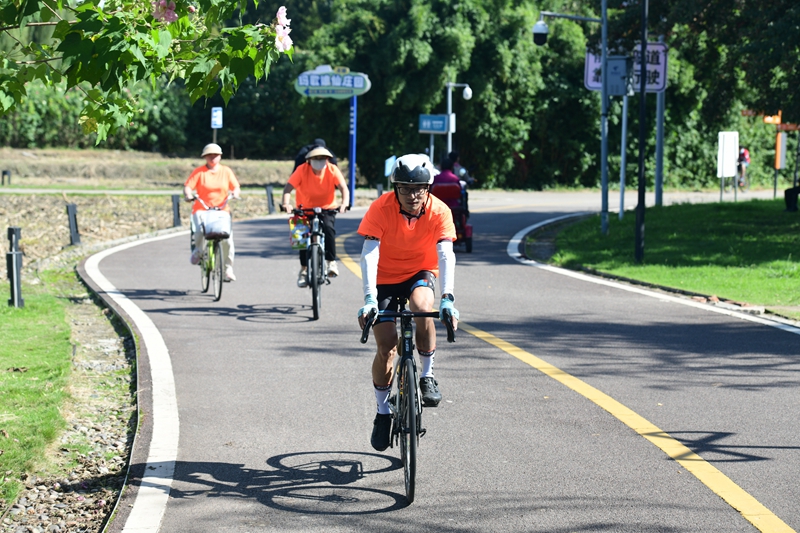 选手们在绿道上感受秋高气爽。(九江街道 供图)
