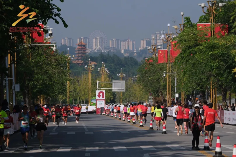 马拉松路线:广安賨城里—花水湾—锦屏花园—阳春桥—东阳滨江丽景—环溪一路—D号桥—富源街—环溪二路—金安大道—天府饭店—中桥—建安中路—思源广场—思源大道—金安大道一段—市民广场—加州阳光—市融媒体中心—乐活城—邓小平故里南门—小平干部学院—兴华路—福兴大道—圣雅山庄(折返)—福兴大道—东环路黄水洞段路口(折返)—福兴大道—兴华路—鸿锦大道—协兴大道东段牌坊路路口(折返)—鸿锦大道—北环路战旗段—牌坊路—协兴大道西段—协兴大道西段小平大道路口(折返)—牌坊路—兴华路—兴华路小平大道路口(折返)—兴华路—春天大道—牌坊路—狮子山街—狮子桥—市博物馆—文博公园—广安賨城里。