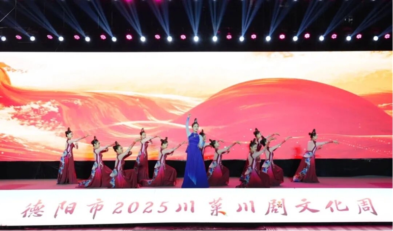 11月2日晚,德阳市2025川菜川剧文化周特色民俗表演在德阳市罗江区八景苑广场举行。