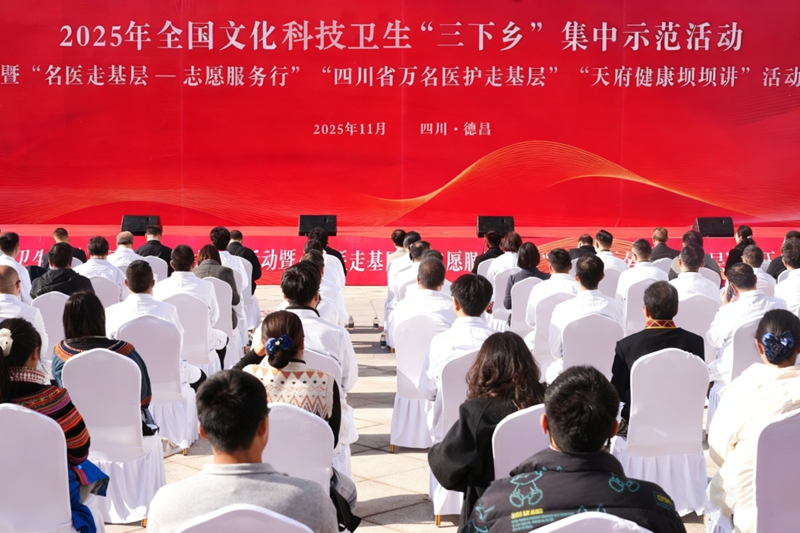11月4日,由国家卫生健康委、四川省人民政府共同举办的2025年全国文化科技卫生“三下乡”集中示范活动暨“名医走基层——志愿服务行”“四川省万名医护走基层”“天府健康坝坝讲”活动在四川省凉山彝族自治州德昌县仓颉广场举行。