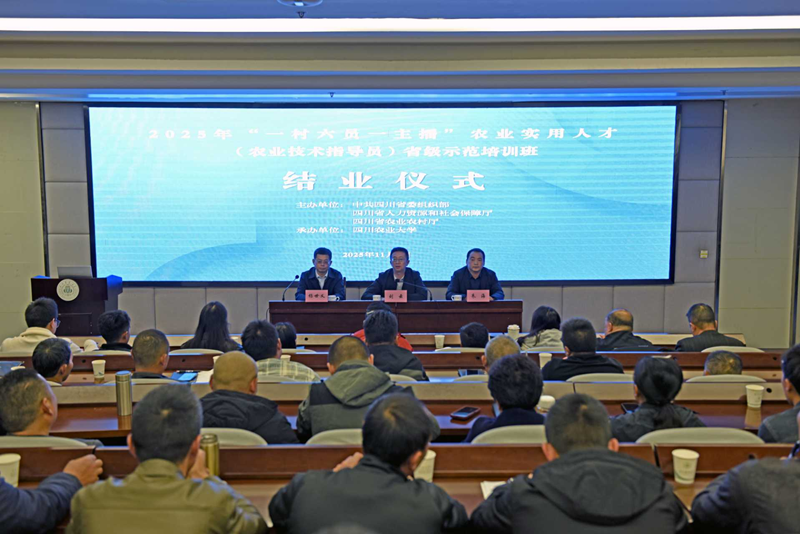 11月7日上午,2025年“一村六员一主播”农业实用人才(农业技术指导员)省级示范培训班结业仪式在四川农业大学成都校区举行。
