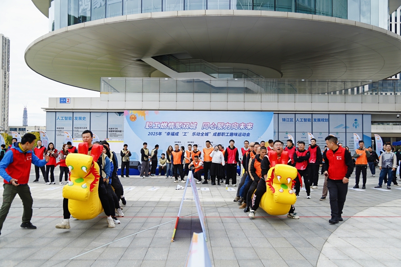11月7日,成都市锦江区白鹭湾科技生态园内活力奔涌、激情飞扬,一场以“职工燃情聚双城 同心聚力向未来”为主题的2025年“幸福成‘工’ 乐动全城”成都职工趣味运动会举办。本次活动由成都市总工会主办,锦江区总工会、锦江经开区承办,联动了成渝两地工会职工代表。