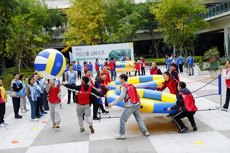 本次运动会通过“齐力舟进”“百人抬鼓”“飞盘九宫格”等团队协作项目,以及全体合唱《荣耀同行》的环节,着重强化沉浸感与凝聚力。