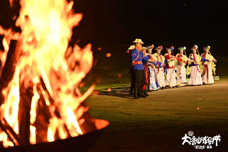摩梭《甲搓舞》、藏族《锅庄》与彝族《三十二步》的共舞,将立冬之夜推向高潮。去年大凉山戏剧节启幕剧目《星回》再次返场,演出引得观众阵阵掌声。