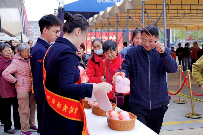 市民排队参与“防诈垂钓”互动游戏。(人保财险成都市分公司 供图)
