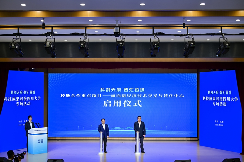 活动现场,由成都人才发展集团与四川大学科技园等单位共建的“成都市人才科技创新服务中心”正式揭牌。该中心整合高校院所、人才和科技服务机构等资源和力量,提供人才创新创业成果评估论证、转化服务等一体化服务。作为校地合作重点项目——面向新经济技术交叉与转化中心也现场启用,将聚焦人工智能、智能终端、医药健康等领域,通过多学科交叉融合,打通科技成果转化“最后一公里”。