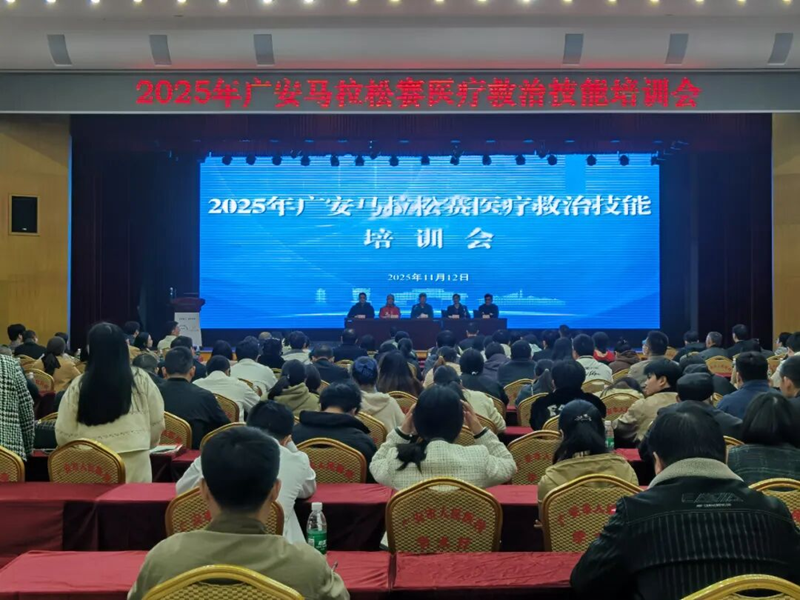 11月12日,广安市卫生健康委员会组织开展2025广安马拉松赛医疗救治技能培训会与应急演练,聚焦赛事应急医疗需求,全面强化赛事医疗保障能力,为2025广安马拉松选手安全保驾护航。
