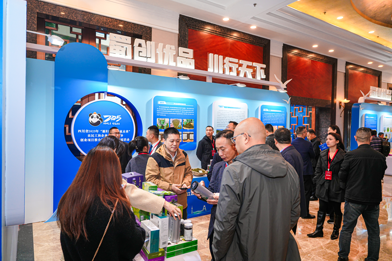 现场还举办了2024年“蜀创优品”四川农民工返乡创业成果线上展销活动颁奖仪式,四川东汉大诚食品科技有限公司、四川卓商众合科技有限公司、攀枝花四喜农业发展有限责任公司等10家企业获奖,并在创业成果交流区进行展示宣传。