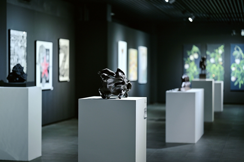 本次展览以“绘塑共生”为核心,共展出成都市锦江区和德阳市中江县两地优秀老中青年艺术家共计152组作品,包括平面绘画、立体雕塑、传统水墨、先锋实验等。