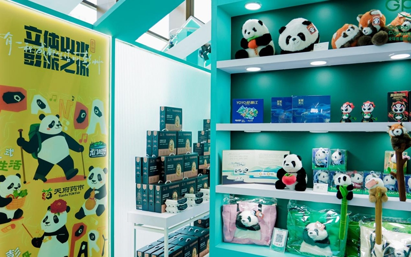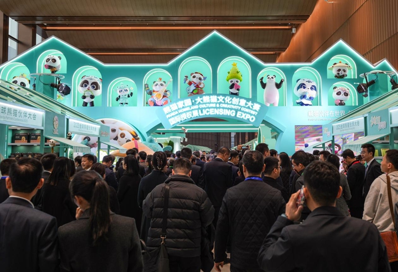 参会嘉宾参观熊猫文创集市。新华社记者 王曦 摄