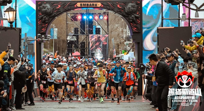 这是在“熊猫伙伴摄影展”上展出的2025熊猫蜀道山超级越野赛开跑图片。(彭州市委宣传部 供图)