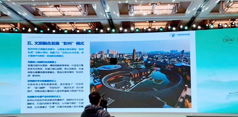 在大会主论坛上,中国旅游研究院解读《2025文旅融合发展创新模式》调研报告中的“彭州模式”。周华萌 摄