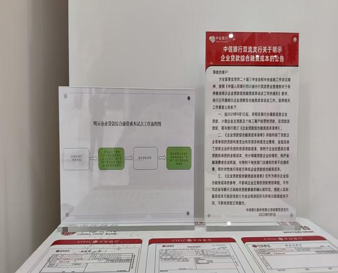 今年8月起,成都双流区作为全市首个试点区域,全面推行“贷款明白纸”政策(即《企业贷款综合融资成本清单》)。中信银行成都双流支行作为区域内试点机构,积极落实人民银行的工作要求,走进小微企业宣讲“贷款明白纸”相关政策。