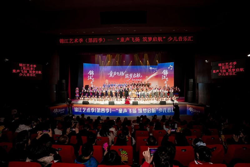 11月28日晚,成都市妇女儿童中心剧场座无虚席,锦江艺术季(第四季)“童声飞扬 筑梦启航”少儿音乐汇在此上演,这场以“童声为桥 红心为魂”为主题的演出,通过“爱在家国”“薪火相传”“向阳生长”三大篇章,以合唱、舞蹈、民族音乐等多元艺术形式,为现场400余名观众呈现了一场艺术与思想交融的视听盛宴。