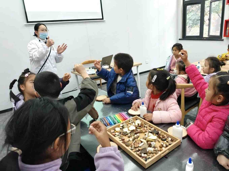 活动设计了识药、辨材、创作等多个环节,带领孩子们沉浸式体验中医药文化的独特魅力。职业医师通过看、闻、触等多种方式,引导孩子们认识枸杞、菊花、陈皮等十五味常见中药材。现场还设置了“趣味辨药”互动游戏,孩子们通过观察药材外形和气味,争相举手抢答。