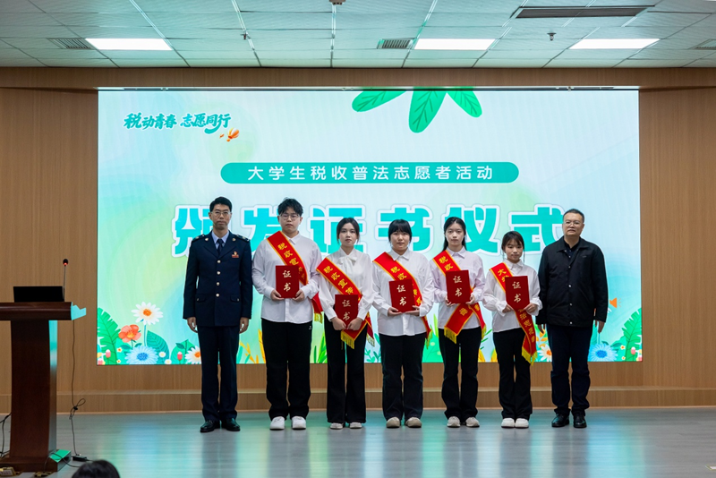 大学生税收普法志愿者活动颁发证书仪式。(杨波 摄)