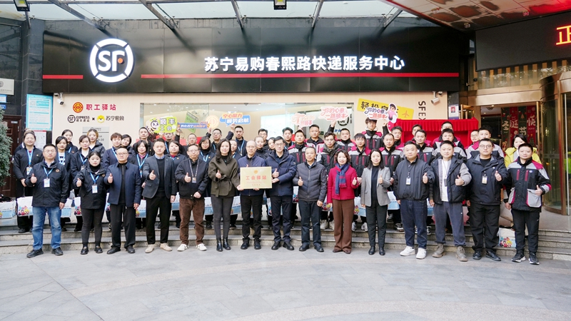 12月25日上午,由四川顺丰速运与苏宁易购联合打造的快递服务站点暨工会驿站,在成都市锦江区苏宁易购春熙路店正式投用。该站点是在成都市、锦江区两级工会和锦江区春熙路街道办事处的指导与支持下,顺丰集团工会与苏宁易购集团工会通过企业工会共建,整合资源、优势互补,创新打造的首个“共建共享工会驿站+快递服务中心”。