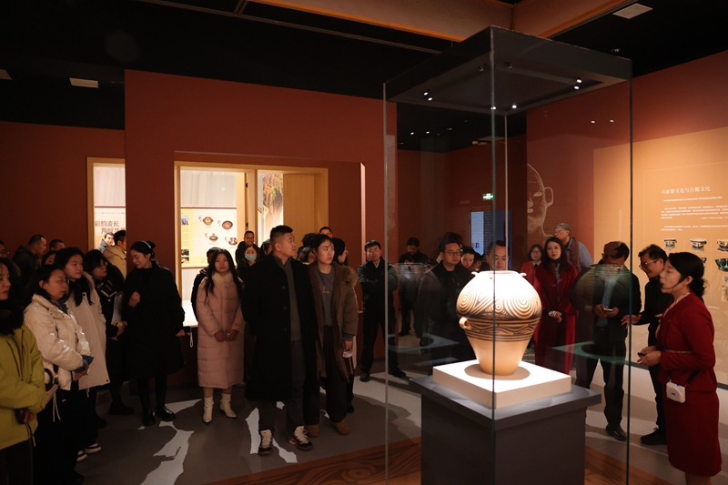 展览以“彩韵流长·陶绽华章”为主线,分为“纹脉递嬗——石岭下类型”“漩彩天成——马家窑类型”“衔华佩实——边家林类型”“彩艺巅峰——半山类型”“陶韵余音——马厂类型”五大单元,系统呈现距今约5500—4000年的马家窑文化发展脉络,展示其在器形、纹饰、工艺与空间分布等方面的演进特征,诠释马家窑文化作为黄河上游史前文明代表、“彩陶之冠”的重要地位,以及其对古蜀文明、三星堆文明乃至“早期中国文化圈”的深远影响。